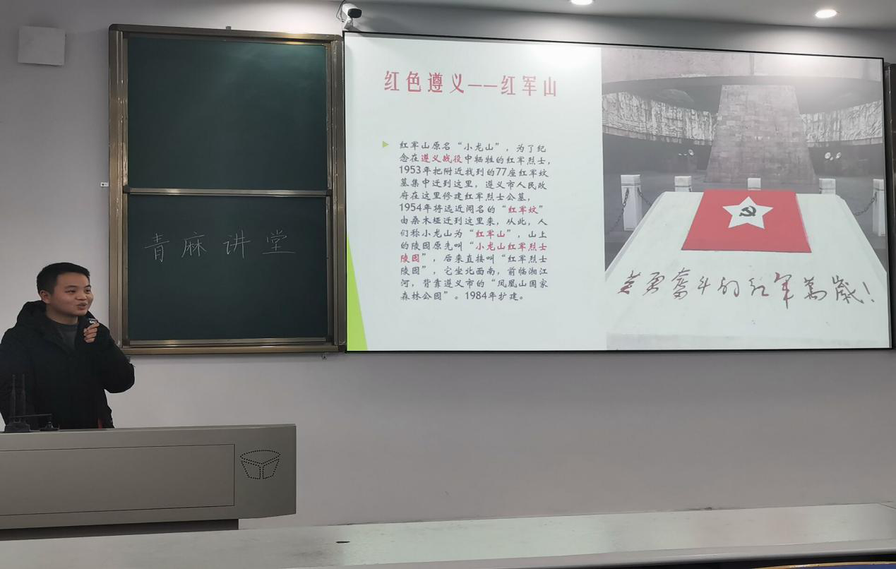 本网讯(通讯员王冬梅张梦钰)2019年12月15日晚17点,2019麻醉班“青麻讲堂”第五期在5311教室如期举行。本期“青麻讲堂”继续带领大家关注上周资讯热点,品味酒文化之美,领略贵州遵义的人文特色与红色历程。