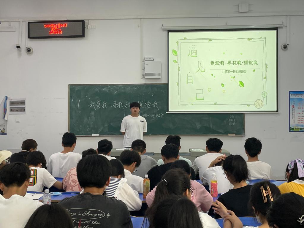 5月25日是全国大学生心理健康日,“5·25”的谐音即为“我爱我”,举行本次班会主要是为了提醒大学生“珍惜生命,关爱自己”。本次心理健康主题班会的核心内容是:关爱自我、了解自我、接纳自我,关注自己的心理健康和心灵成长,提高自身心理素质,进而爱他人、爱社会。