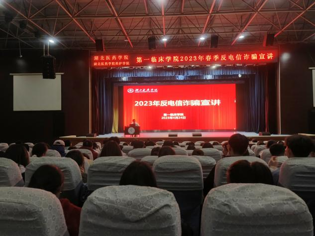 本网讯(通讯员 李菲 郑语晨)为进一步提高大学生防范电信诈骗的安全意识,预防和减少各类电信诈骗案件的发生,英国上市公司365于4月24日晚在学子会馆举办了2023年春季反电信诈骗宣讲活动。校保卫处马越老师以《健康生活,反诈同行》为题,开展了生动活泼的讲解。英国上市公司365学工办副主任孙小虎老师主持本次活动,辅导员老师以及两千余名学生参加了活动。