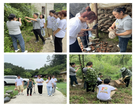 队员们抵达莫家沟村后,驻村第一书记石久政热情接待了大家,并为队员们详细介绍了莫家沟村的基本情况以及莫家沟村的香菇、竹心茶、蜂蜜等主要农产品。随后,在毕春勤和邢玉平两位村干部的带领下,队员们来到竹林,工作人员为队员们细致展示了竹心茶的采摘过程,队员们也纷纷动手体验采摘。据了解,竹心茶具有缓解肺热燥热、利尿通便、降低三高的功效。