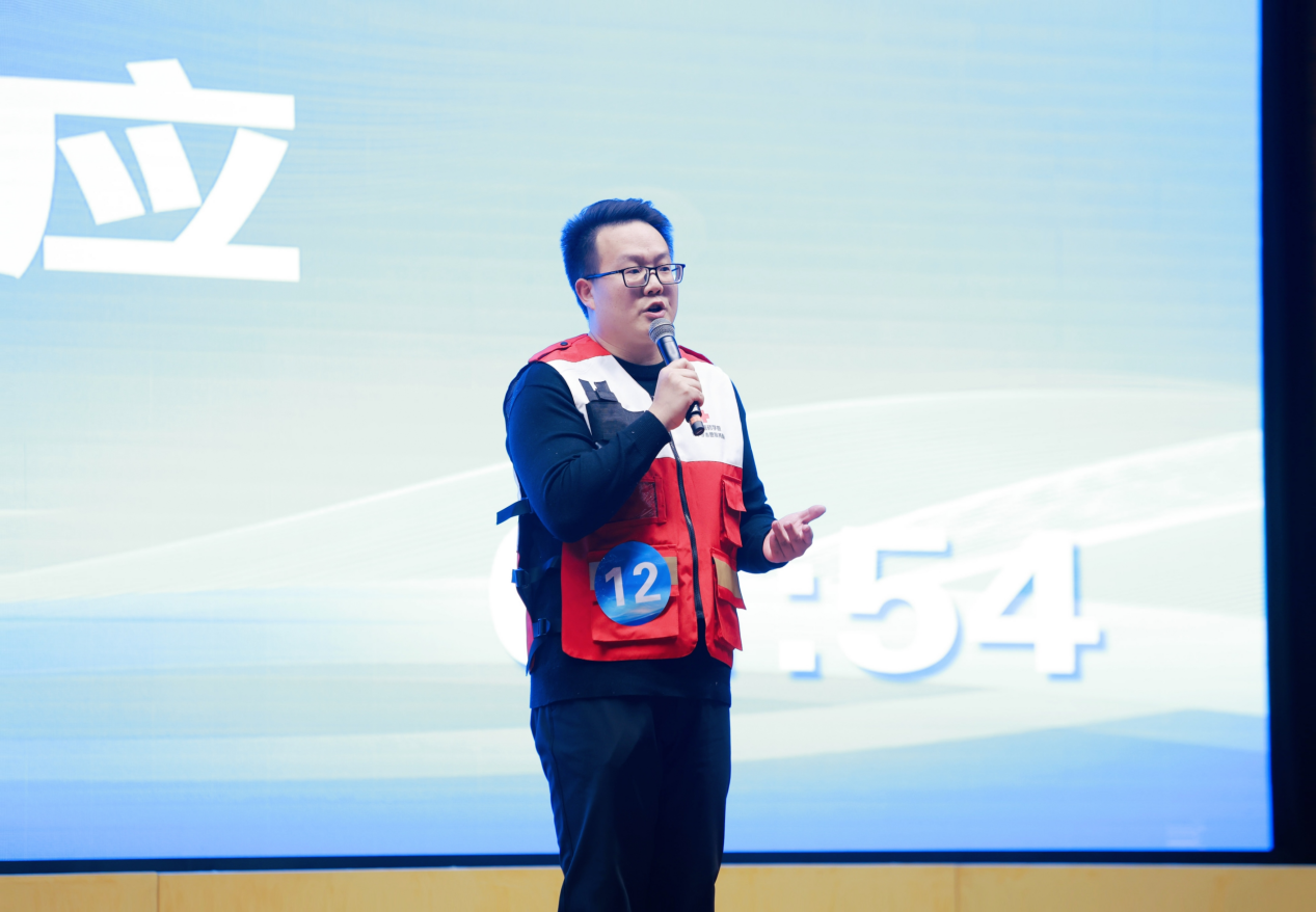 决赛现场,彩虹灾害医学救援志愿服务队以“实操+讲解”相结合的方式进行救护操作展示。伴随着清晰的步骤解说,队员完整演示了从评估环境、判断意识、胸外按压、人工呼吸等单人心肺复苏全流程,并现场模拟了自动体外除颤仪(AED)的取用、开机、贴电极片及电击除颤等关键操作。严谨准确的讲解与专业细致的操作,将应急救护知识转化为了一堂通俗易懂、生动鲜活的科普课程,赢得评委专家与现场观众的一致好评。
