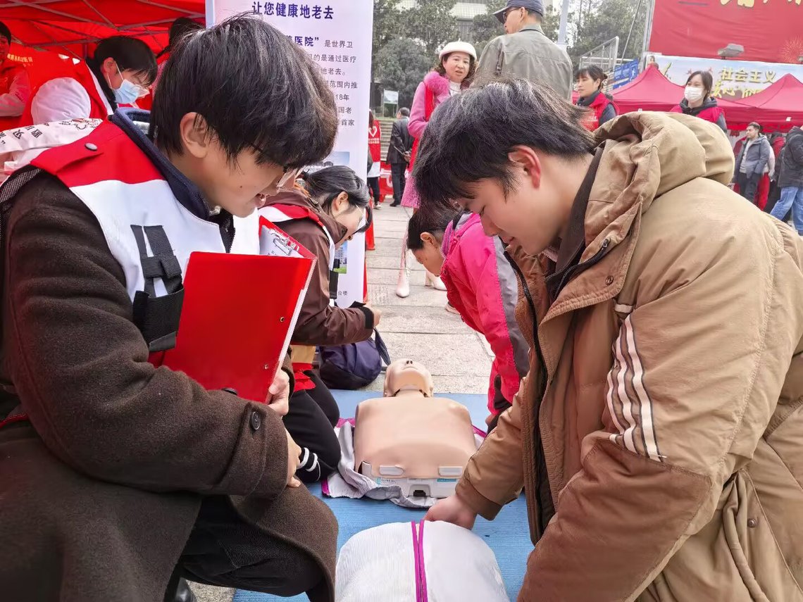 3月5日,“追‘锋’而行,‘青’暖荆楚”2026年“学雷锋”志愿公益集市在青年广场火热开市。“彩虹”灾害医学救援志愿服务队现场开展急救技能教学,手把手教授心肺复苏等实用技能,提升居民自救互救能力;可可梦志愿服务队通过趣味游戏,向社区儿童传递安全自护知识;医护相伴,青春不“毒”行志愿服务队向群众普及禁毒知识,提高大家识毒、防毒、拒毒的意识和能力;向“养”而生康复医疗志愿服务队则发挥专业特长,为居民提供康复咨询和基础检查服务,耐心解答关于慢性病防治、日常保健等问题,贴心的服务赢得群众的一致好评。